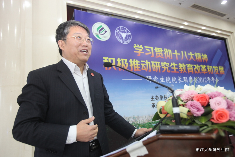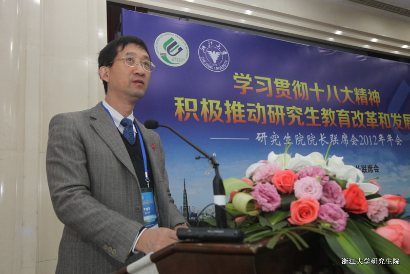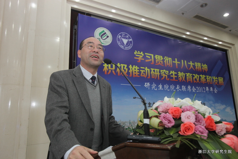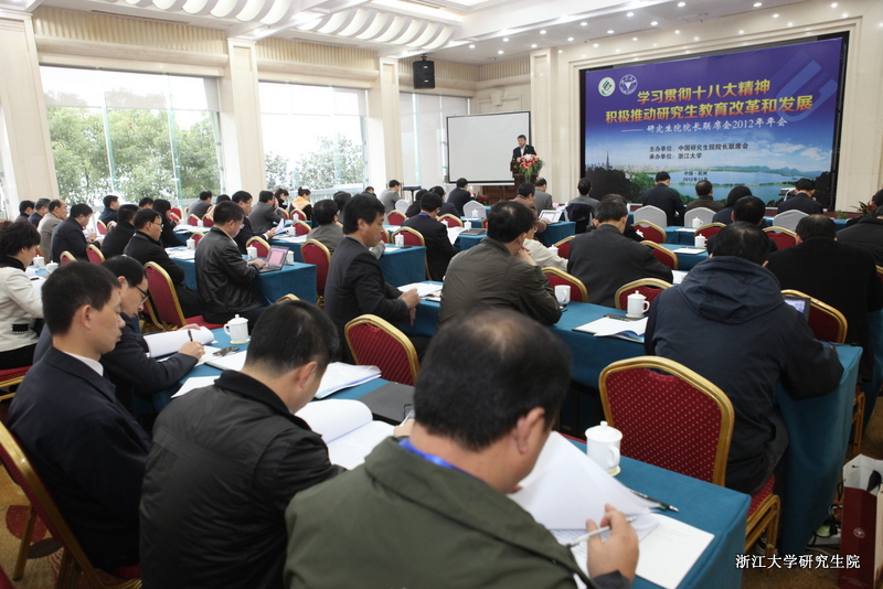 2012年11月23日,以“学习贯彻十八大精神,积极推动研究生教育改革和发展”为主题的“中国研究生院院长联席会2012年年会”在浙江大学隆重举行。教育部学位管理与研究生教育司司长郭新立,副司长孙也刚、黄宝印,教育部学位与研究生教育发展中心主任李军,国家留学基金管理委员会副秘书长杨新育等应邀出席了大会。浙江大学副校长来茂德出席开幕式并致辞。联席会本届主席院长,2012年轮值主席,浙江大学副教务长、研究生院常务副院长严建华主持开幕式。
