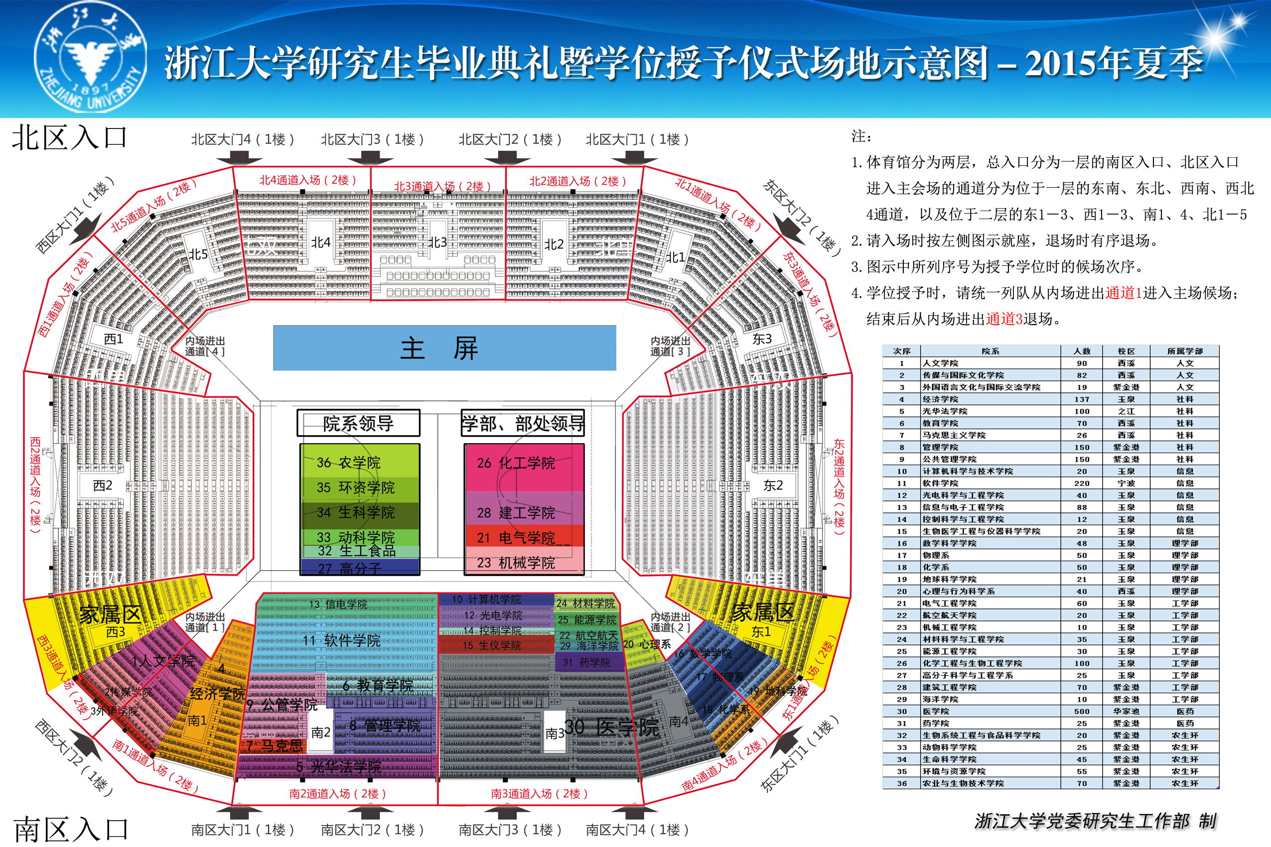 7.请各院系负责学位授予仪式组织工作的领导在6月29日下午3:00后到紫金港校区体育馆熟悉自己院系的场地和学位授予仪式程序。场地安排见附件。