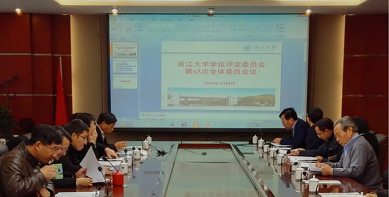 2015年12月8日上午,浙江大学学位评定委员会召开第65次全体委员会议,审议学科调整工作方案、省一流学科遴选工作方案、新版学位证书中英文文本方案,讨论十三五研究生招生发展规划。