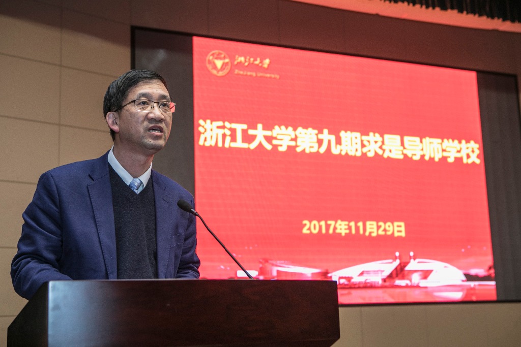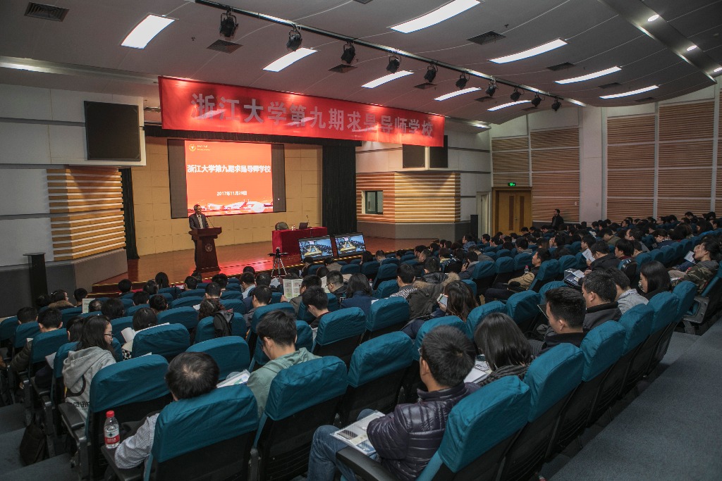 浙江大学求是导师学校成立于2007年,至今已举办九届。先后已有2000余位校内导师以及十余所省内高校的300余位导师参加了学习。求是导师学校旨在为广大研究生导师创造一个共享经验、互相学习的平台,在这里,导师们可以直接聆听国家政府部门的主要领导、国家政策研究机构的资深学者、国内研究生培养单位的著名专家的真知灼见,与智者对话,促使导师更多地关注研究生全面素质的培养,为构建更加和谐的师生关系营造良好氛围。第九期求是导师学校围绕导师“立德树人”根本任务,深入学习贯彻党的十九大精神和习总书记在全国思想政治工作会议上的讲话精神,达到了预期成效。