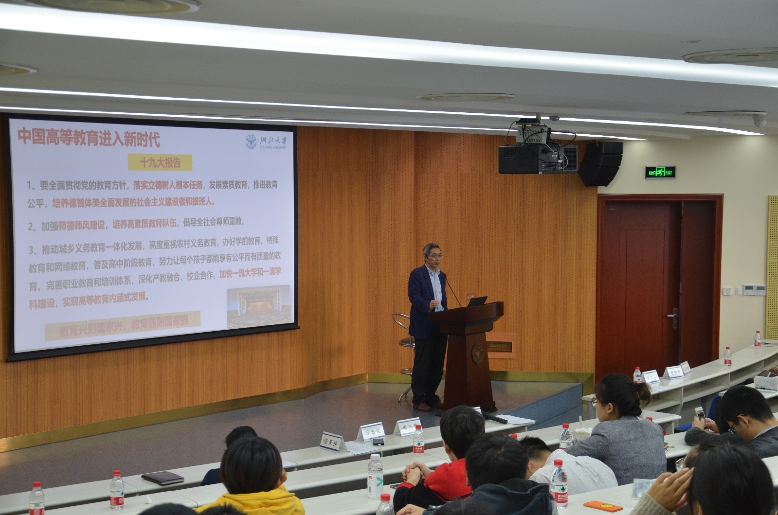 开班仪式结束后,研究生院副院长叶恭银为同学们作了新生始业教育报告:《新时代、新征程,做具有全球竞争力的交叉培养人才》。叶恭银教授结合国际学科前沿及十九大报告中加快一流大学和一流学科建设,实现高等教育内涵式发展的内容,向同学们介绍了在这样的时代背景下,浙江大学多学科交叉培养博士研究生应有的核心任务、培养目标和社会责任,勉励在座的各位同学将浙大人肩负的时代责任铭刻于心,胸怀远大抱负,夯实专业基础,通过学科交叉培养提升自己的综合能力,将个人梦融入浙大梦、中国梦,为学校的发展、社会的进步、国家的富强与民族的振兴奉献自己的青春与力量。