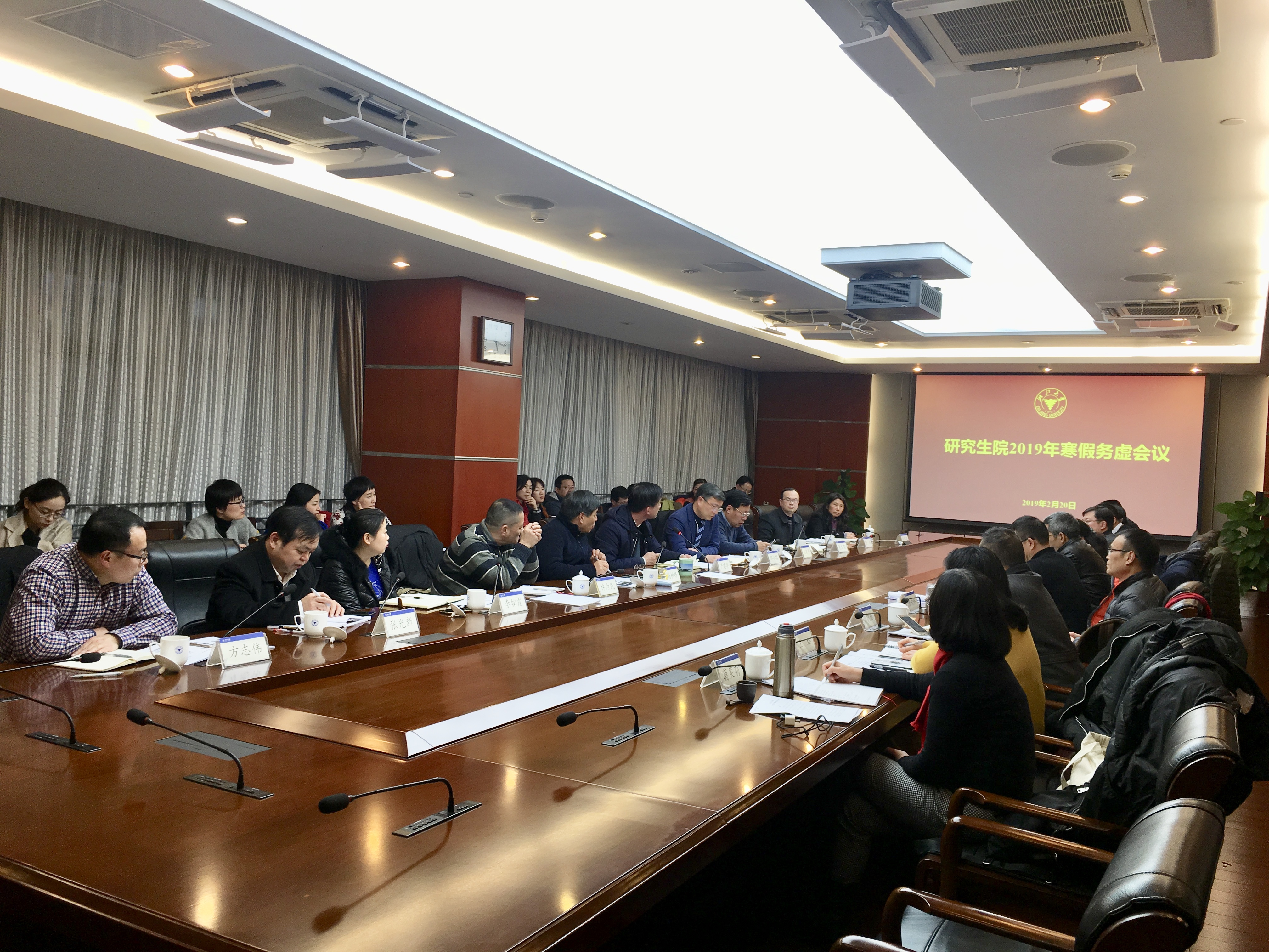 为全面贯彻党的十九大以及全国教育大会、全国高校思想政治工作会议精神,落实浙江大学第十四次党代会部署,牢固树立一流意识,紧紧围绕一流目标,认真贯彻一流标准,研究生院于2月20日在紫金港校区召开2019年寒假务虚会议。本次会议聚焦研究生教育内涵式发展,以立德树人为根本,提高质量为核心,推进综合交叉的一流学科体系建设,全面开展卓越研究生培养计划,深化博士研究生和专业学位研究生教育综合改革。研究生院领导班子和各处室工作人员出席了本次会议。会议还邀请了校党委常委、副校长严建华、校党委常委、副书记邬小撑、中国科学院院士、原研究生院常务副院长杨树锋、原研究生院常务副院长王家平、原党委研工部部长许为民、本科生院院长张光新、科学技术研究院常务副院长夏文莉、校党委办公室校长办公室副主任陈浩、政策研究室主任李铭霞、国际合作与交流处副处长陈伟英、社会科学研究院重点成果推广部部长方志伟参会并予以指导。会议分为三个阶段,由研究生院院长周天华主持。