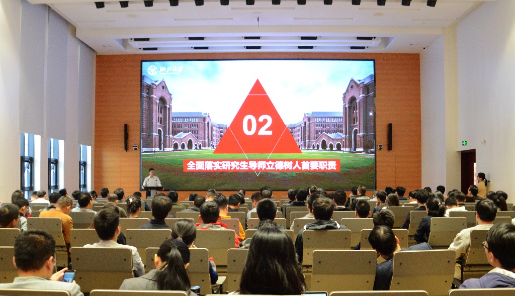包刚院长首先从研究生教育历史、学科体系、人才培养、导师队伍、招生人数等方面向各位新教工介绍了我校研究生教育概况。随后,围绕“全面落实研究生导师立德树人首要职责”和“卓越研究生教育实践与探索”两个主题展开阐述。他指出,习近平总书记对研究生教育工作作出重要指示、李克强总理对研究生教育工作作出重要批示,意味着研究生教育步入了新时代。教育部陆续出台有关导师的若干文件,强调要把立德树人作为研究生导师的首要职责,落实导师是研究生培养第一责任人的要求,造就一支有理想信念、道德情操、扎实学识、仁爱之心的研究生导师队伍,培养德才兼备、全面发展的高层次专门人才。浙江大学在建设世界一流大学的进程中,提出了更加卓越研究生教育的目标和“三步走”发展战略,并实施一系列举措,以推进博士研究生教育综合改革、深化专业学位研究生综合改革、推进综合交叉的一流学科体系建设,加快构建高水平研究生培养体系,以规范导师管理、加强师德师风、强化业务素质、推进卓越教育,建设新时代高素质研究生导师队伍,打造卓越研究生教育品牌。