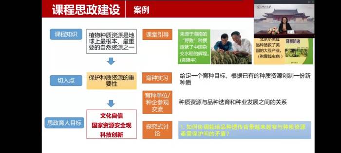 黄鹂教授是浙江省一流课程和浙江省首批课程思政示范课程《园艺植物育种学》负责人、2021年获得浙江大学首届高校教师教学创新大赛“课程思政”专项赛一等奖,分享主题是《基于问题的<园艺植物育种学>探究式教学模式探索》。她分享了在《园艺植物育种学》课程教学过程中,如何实施课程思政教学的教学思路、教学设计和课堂教学全过程:建立契合课程主要内容的思政教学目标,在教学设计中将课程知识点融入对应的思政点。在课堂教学中,通过课堂多媒体讲授、MOOC、微视频、专家报告、下到基地等多种形式,引导学生通过小班化讨论互动、实践体验、实地考察、线上自学等方式全方位培养学生自主学习能力和独立创新思考能力,实现教学相长。在探究式教学的基本框架与模式下,探索了问题情景式教学方式和开放式的学习,充分体现了课程教学的“高阶性”“创新性”“挑战度”,凸显学生在教学中的主体性地位与教学过程的深度参与。