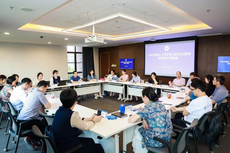 为学习贯彻习近平新时代中国特色社会主义思想及习近平总书记对浙江大学重要指示精神,坚持“四个面向”,进一步心怀“国之大者”,围绕“以学生成长为中心,打造卓越研究生教育体系”,全面了解研究生教育的战略部署、实施思路及管理政策,共同为研究生教育“把脉问诊”,研究探讨新时代卓越研究生教育的发展路径。7月12至13日,研究生院举办2022年学位与研究生教育管理骨干研修班。