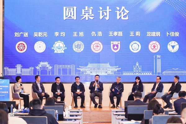 随后,九校代表就专题报告内容展开圆桌讨论,更加深入地讨论人工智能如何高质量赋能研究生培养的全过程、各阶段,如何清晰描绘出学术学位与专业学位各自的培养路径,进一步畅通分类发展的通道等话题,交流各自的经验和看法,共同为研究生教育发展献计献策。