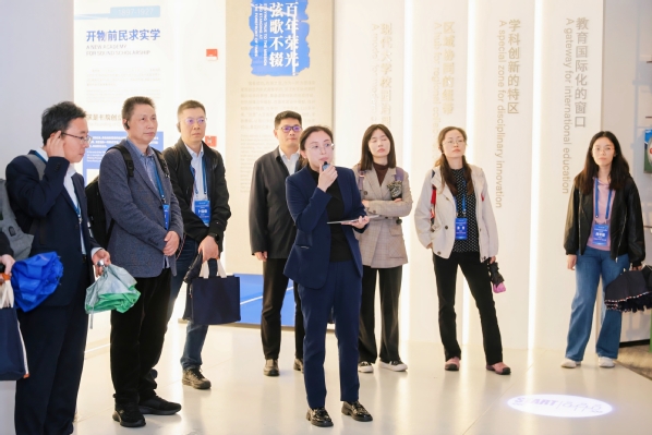 与会期间,参会代表们在国际联合学院(海宁国际校区)副院长陈良的陪同下,参观了国际校区学术大讲堂展示中心。展示中心全景式呈现了浙江大学120多年的建设发展史,全方位记录了国际校区建设办学情况,全体师生同心同行同奋进的开拓历程。