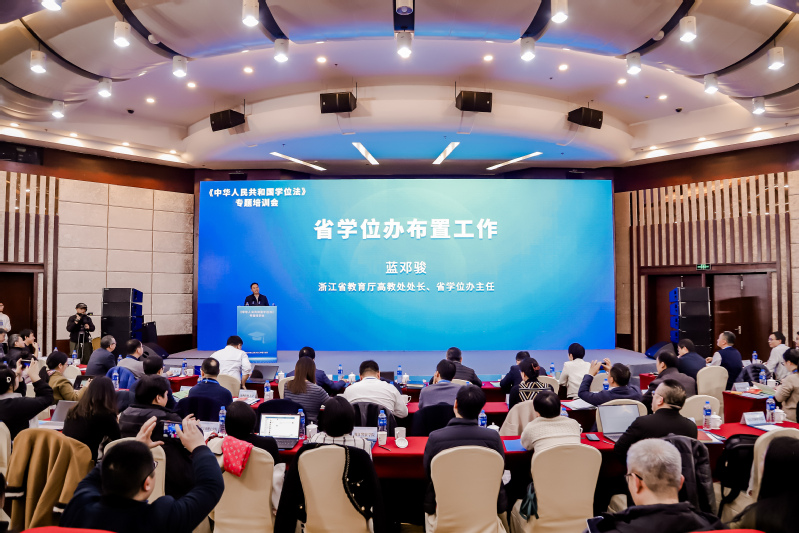 12月14日上午,由浙江省学位委员会办公室主办,浙江省研究生教育学会、浙江工业大学共同承办的《中华人民共和国学位法》(以下简称《学位法》)专题培训会在杭州顺利召开。来自全省63家学位授予单位的180余名教务处负责人、研究生院(处)负责人、学位相关职能部门工作人员参加了此次培训。