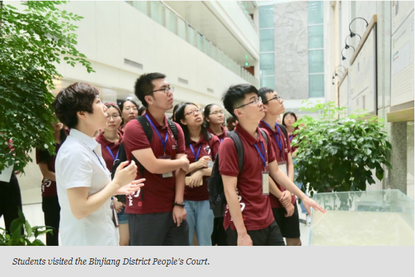 As a group, both Chinese and internationalstudents took part in a variety of law-related activities together. On thesecond day, they visited the Binjiang District People’s Court, where they had achance to attend two criminal trials. They were also invited to Zhejiang ZedaLaw Firm and an academic salon host by Prof. ZHAO Jun, with the theme of“Mutual Encouragement and Interaction of International Rule of Law and China’sRule of Law”.