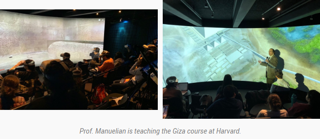 Harvard’s head start in VR can be partly explained by a number of efforts. Early at the dawn of 20th century, George Reisner, the director of a joint archaeological mission from Harvard and the Museum of Fine Arts, Boston, commenced the accumulation of raw archaeological data. Later, Peter Der Manuelian, Professor of Egyptology and an avid developer of VR educational technology for archaeology at Harvard, initiated the Giza Project in 2000, and created the Giza course; he is a dedicative partner of DIAO's course-sharing initiative. In addition, gratitude is due to the technological and logistical assistance provided by the Visualization Research Laboratory of the Department of Earth & Planetary Sciences (Rus Gant, Josh Widdicombe), and by the French company Dassault Systèmes of Paris and Waltham, MA.