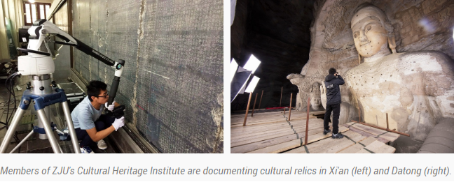 Members of ZJU's Cultural Heritage Institute are documenting cultural relics in Xi'an (left) and Datong (right).