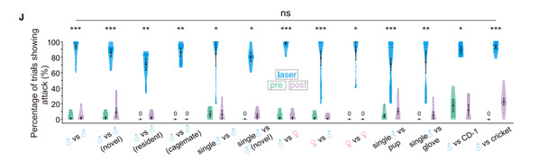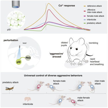 After optogenetic activation of pSI, mice would also exhibit physiological changes related to anger, such as bulging eyes, accelerated breathing, increased heart rates and trembling. In as many as 13 different situations, those optogenetically activated mice would attack their opponents in the light-evoked “battle mode”.