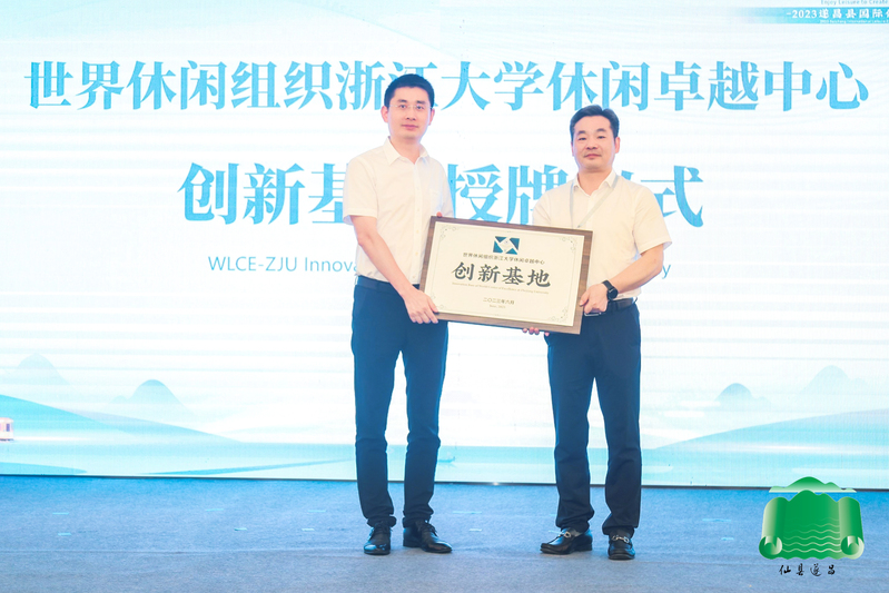 On June 9, World Leisure Center of Excellence at Zhejiang University (WLCE-ZJU) celebrated the establishment of its“ Innovation Base” in Suichang, Zhejiang Province. Mr. Wu Juhui, Secretary of the Party Committee of the College of Education at ZJU, attended the ceremony and presented a plaque to the Suichang County Government, signifying the official settlement of WLCE-ZJU's Innovation Base. This base will enable WLCE-ZJU to exert its influence in Zhejiang and promote the high-quality development of the leisure industry.