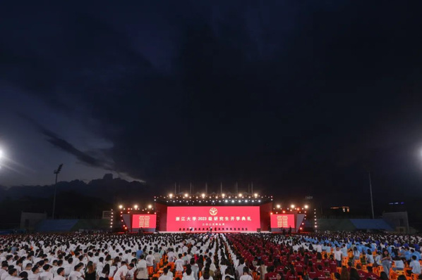 On the evening of September 16, Zhejiang University held a grand opening ceremony for the 2023 graduate student cohort. The ceremony took place On Zijingang Campus and had satellite locations at the Ocean College, the School of Software Technology, the International Joint Institute, and the International School of Medicine.