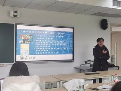 The morning of February 26, 2024 witnessed the success of the 24th session of the Dong’s Academic Salon of Literature, History and Philosophy “History of Sino-German Literary Exchange”, as well as the 55th session of “Zijin Lectures”. Themed “Distant Mystery: Global Historical Landscape of German Literature from Goethe to Trojanow”, the lecture was delivered by Prof. LI Shuangzhi, Dean of German Department of College of Foreign Languages and Literature of Fudan University, and moderated by Associate Prof. LIU Yongqiang from School of International Studies of Zhejiang University. Prof. LI Yuan, Academic Leader of German studies, Dr. ZHUANG Wei, a youth researcher of “Hundred Talents Program” and some undergraduate, postgraduate and doctoral students from German major or other majors attended this lecture.